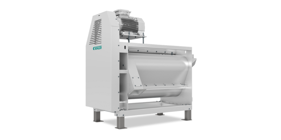 The MOZL is used to dampen grain before grinding in the milling process. It has two rotors, which thoroughly mix the water and grain. It can add up to 7% of water in a single flow-through. You can also use it in breweries to dampen malt.