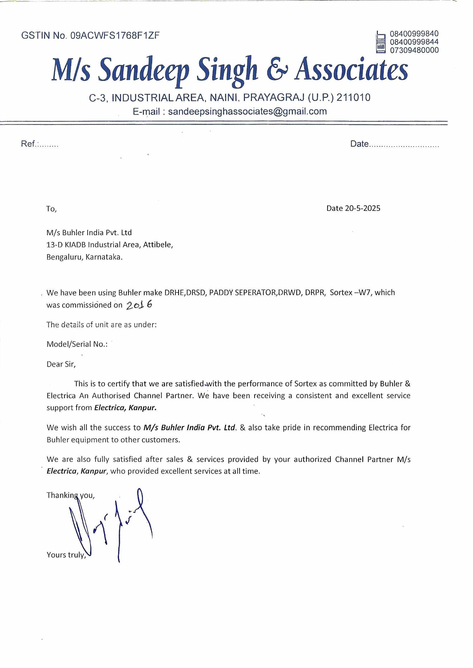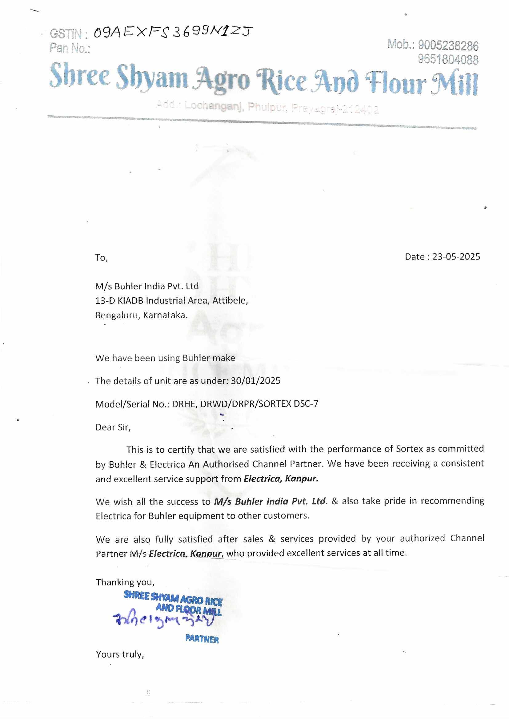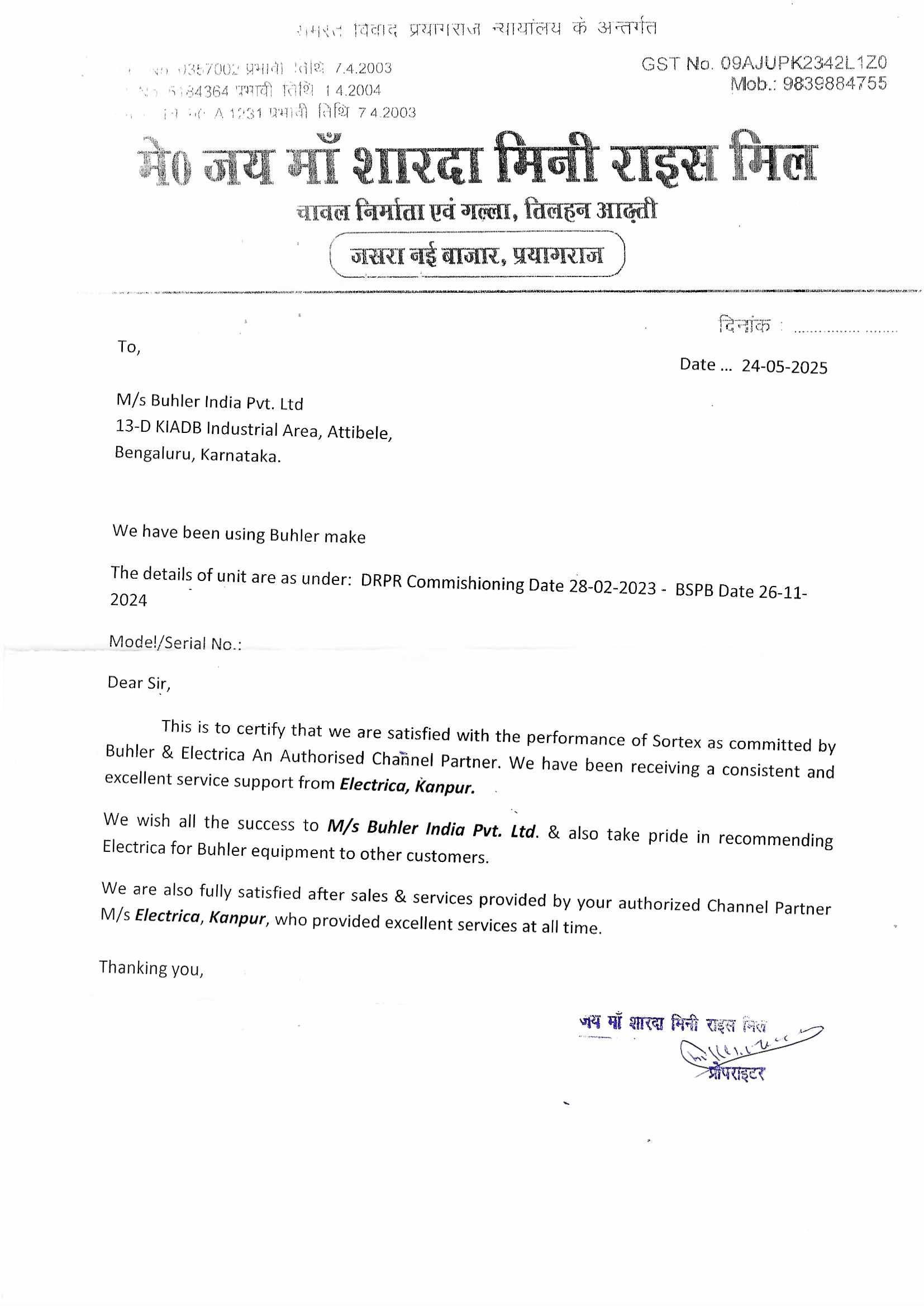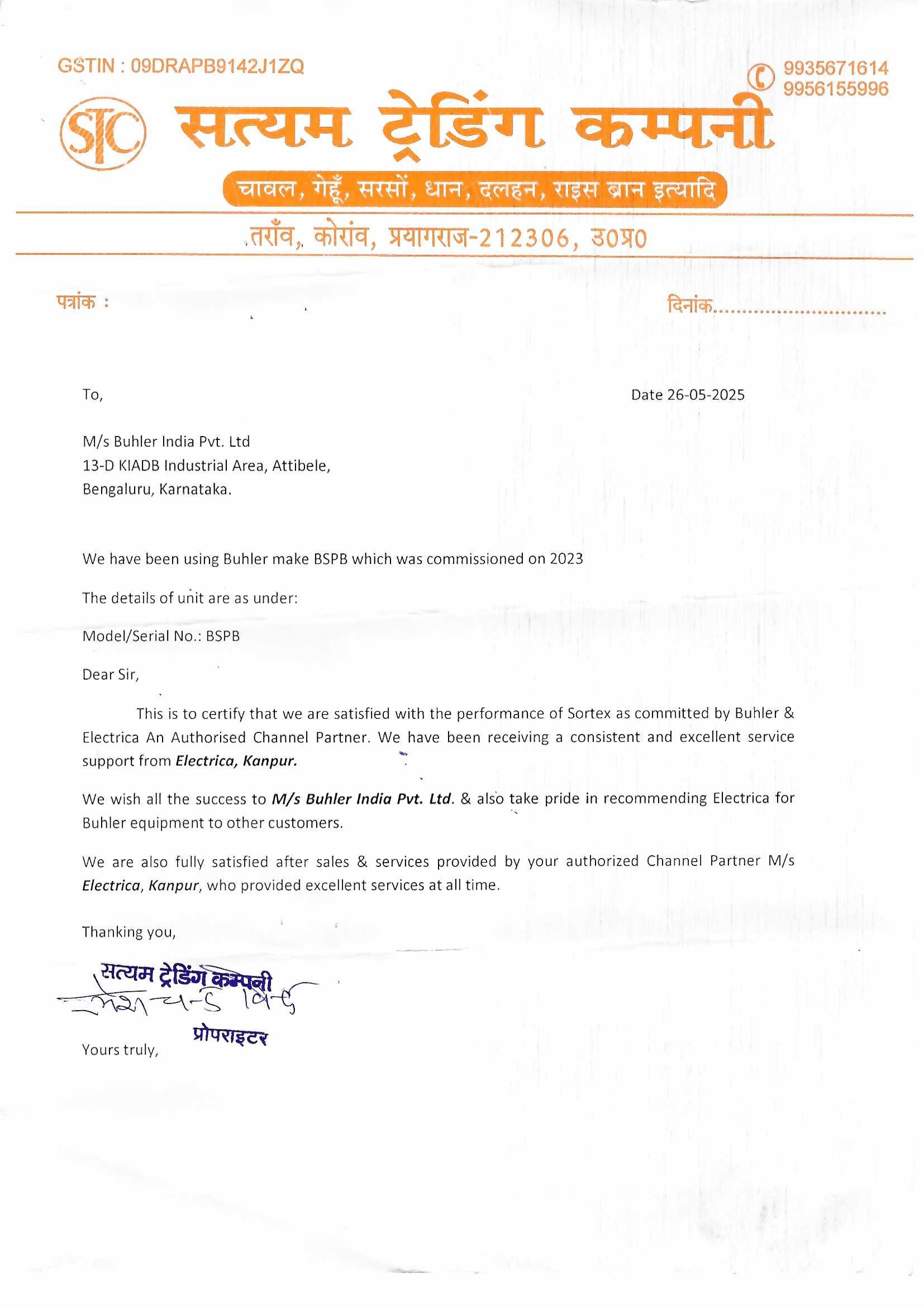 Channel Partner of Buhler India Pvt. Ltd. Since 2019 involves in sales, warranty services & continual services of Rice mill machineries, Flour mill machineries and Pulses/seeds processing plant machineries including colour sorters.